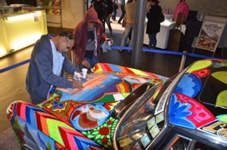 Iqbal Sanam popularized truck art outside of Pakistan’s roadways in 2002. His passion for this native art form led him to create the first truck art items which was a