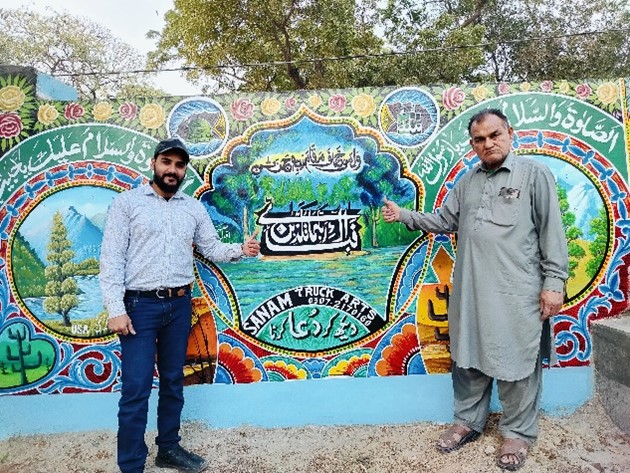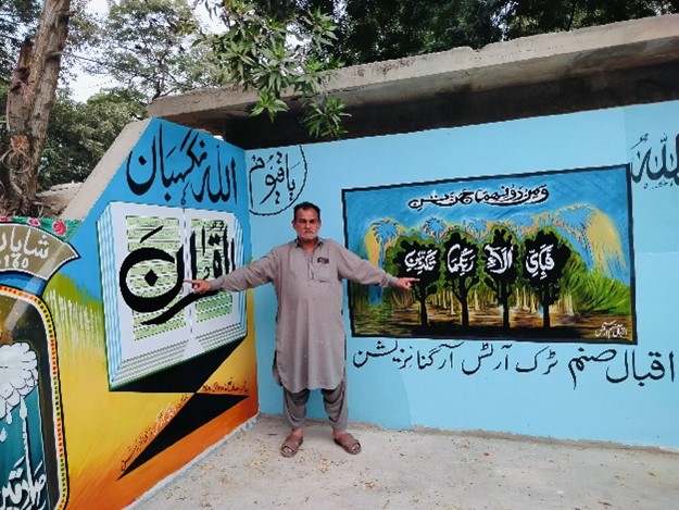 Our group which includes well known artists Iqbal sanam truck artist and shayan khan has taken on the task of painting a mural that reinterprets Sadequain famous pieces from a truck art perspective This project creates a genuinely unique fusion of artistic forms, as it is the first time in history that Sadequain masterpieces have been altered and transformed in this way.
